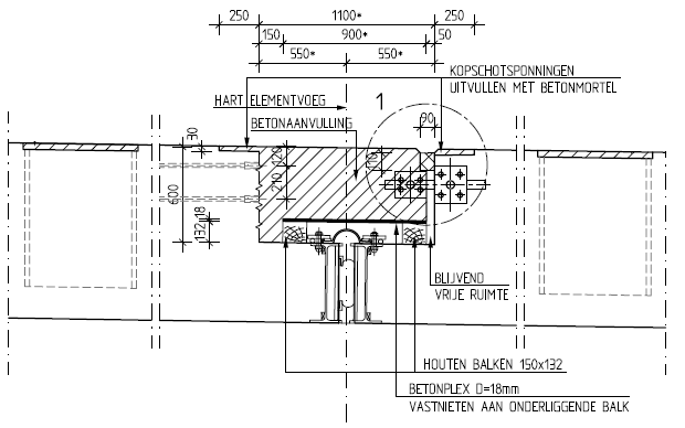 Figuur 370.9 - Wapening tandconstructie t.p.v. een mootvoeg bij de 2e Coentunnel
