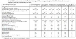 In onderstaande grafiek is voor enige specifieke bouwwerkzaamheden de geluidbelasting (dagwaarde) gegeven in relatie tot de afstand en grenswaarden uit Bouwbesluit 2012 [75].
