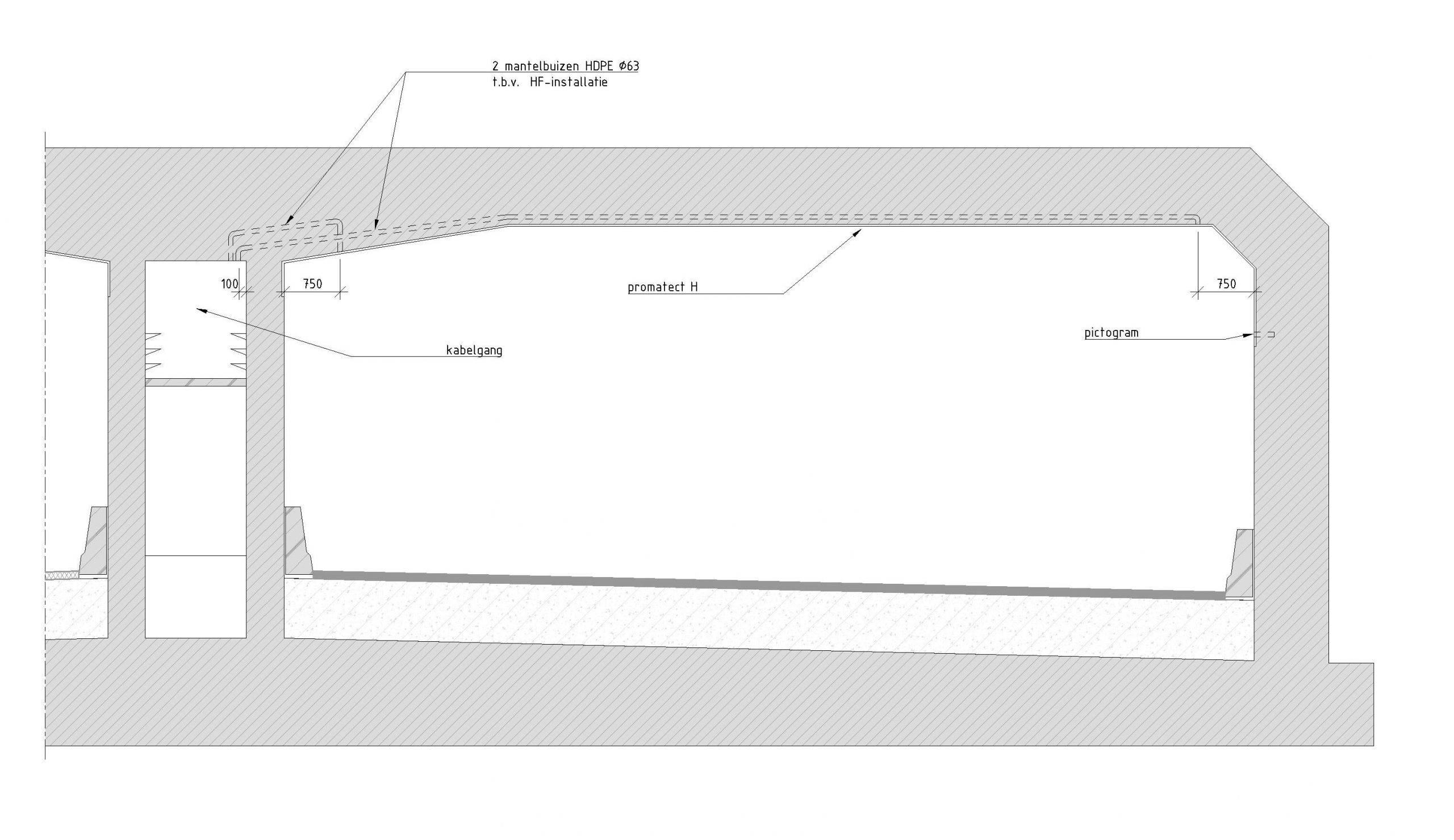 De hoogfrequent en radiocommunicatie installatie dient aan het begin en einde van de tunnel geplaatst te worden.
