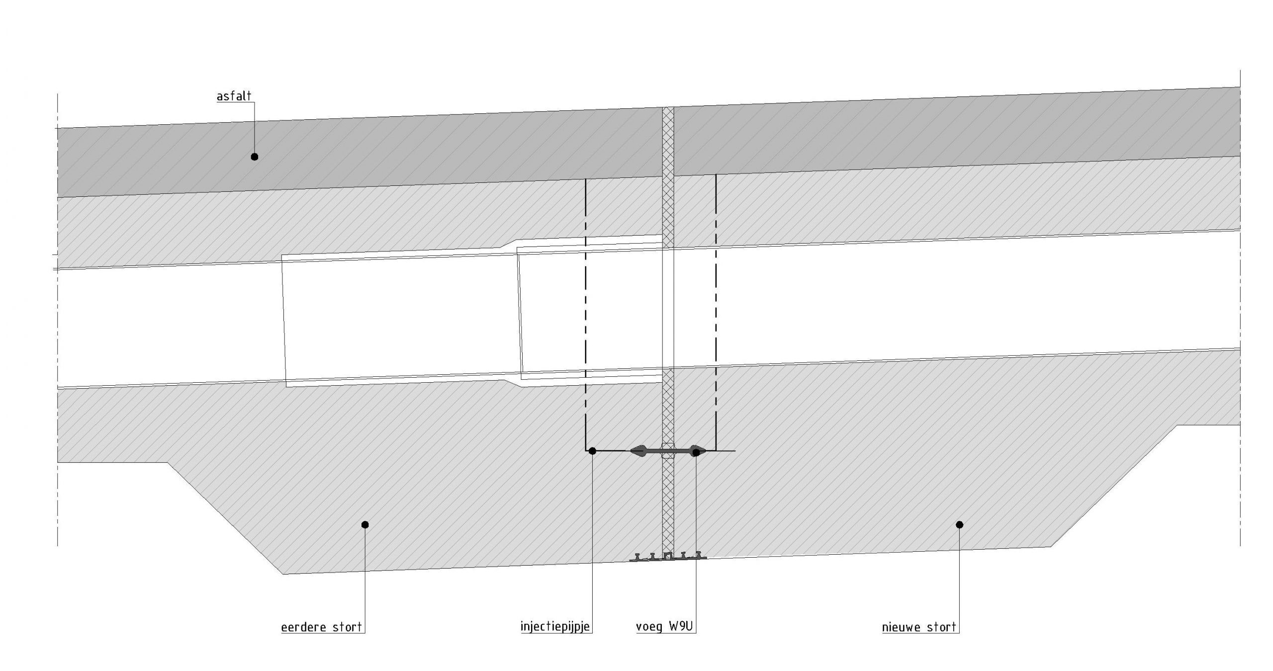 Om enige beweging in de dilatatievoeg mogelijk te maken wordt een mofverbinding toegepast om de langsbeweging te accommoderen. Om verticale vervorming door verkeersbelasting of zettingsverschillen op te vangen wordt de HWA-buis over een meter omwikkeld met Airex, 20 mm dik. Aan de andere zijde van de voeg wordt de HWA-buis vast ingestort. De toerit is op palen gefundeerd waardoor verschilvervormingen over de voeg beperkt zullen zijn, kleiner dan 10 mm, waardoor de vervormingscapaciteit van de Airex omwikkeling voldoende is.