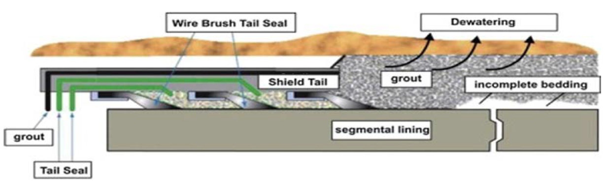 Figuur 690.9 – Principe van opvullen staartspleet: ruimte aan achterzijde TBM tussen lining en grond.