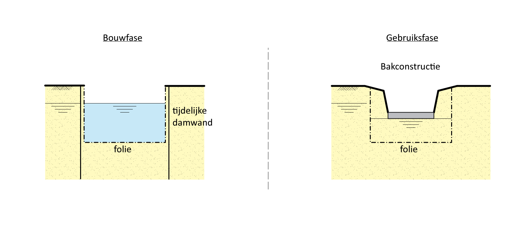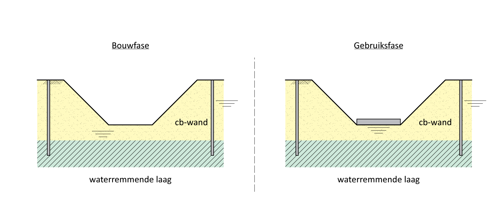 Figuur 46.3 - Bouwkuip met een kunstmatig aangebrachte waterremmende laag