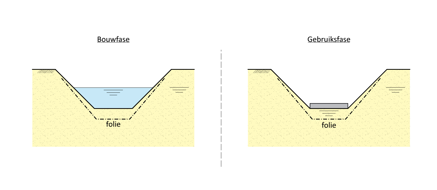 Figuur 46.5 - Polderconstructie met taluds en folie (schematische weergave)