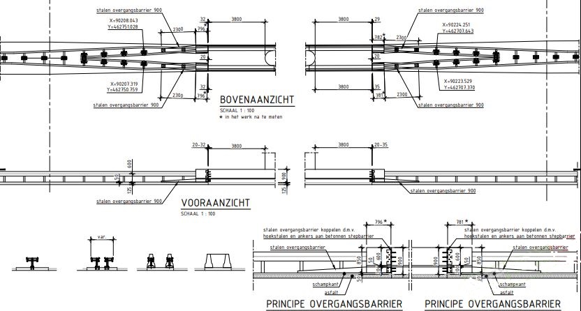 Figuur 459.2 – Detail principe overgang stepbarrier geleiderail 900mm