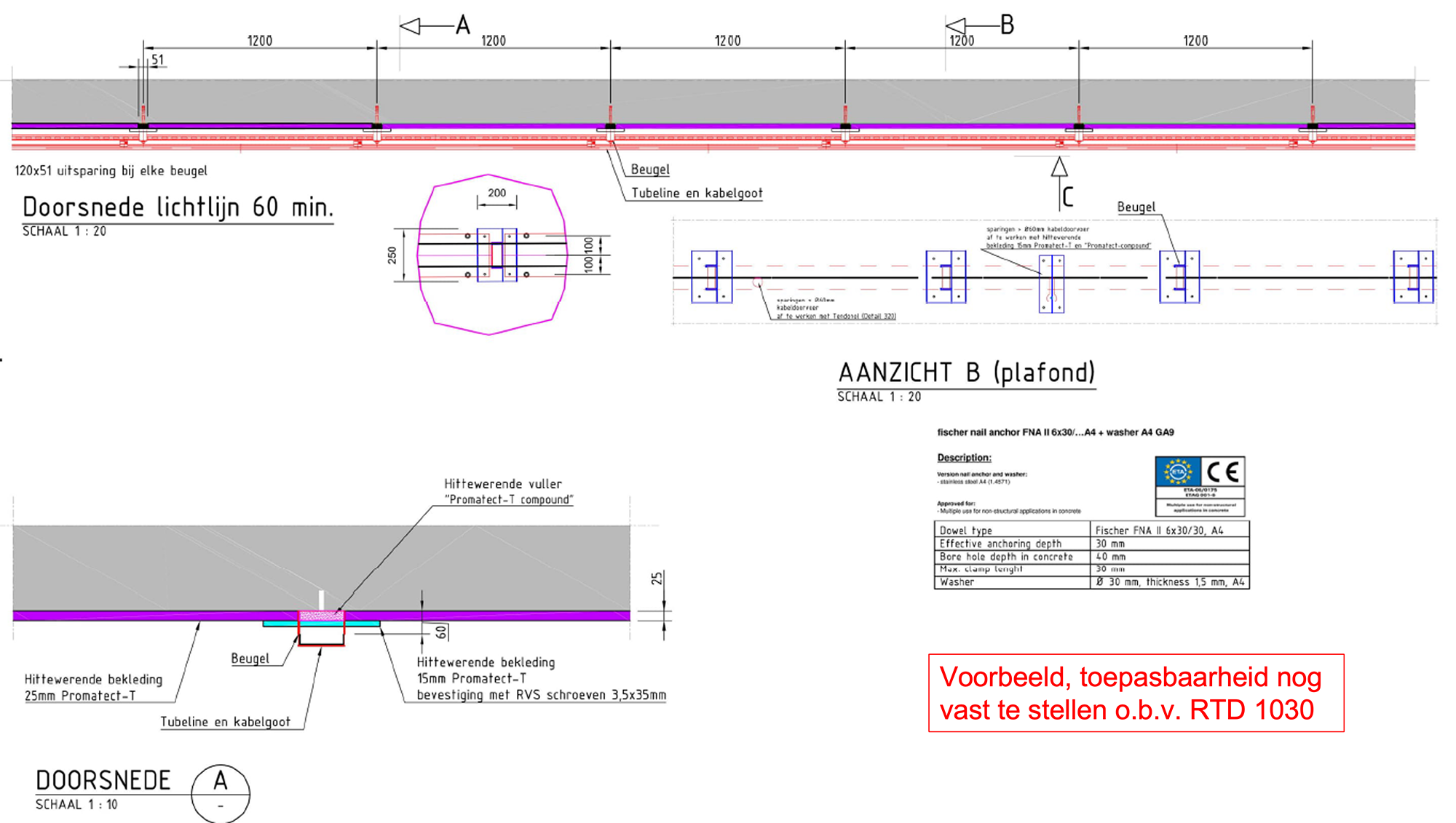 Figuur 498.12 – Detaillering bij lichtlijn brandwerendheid 60 min.